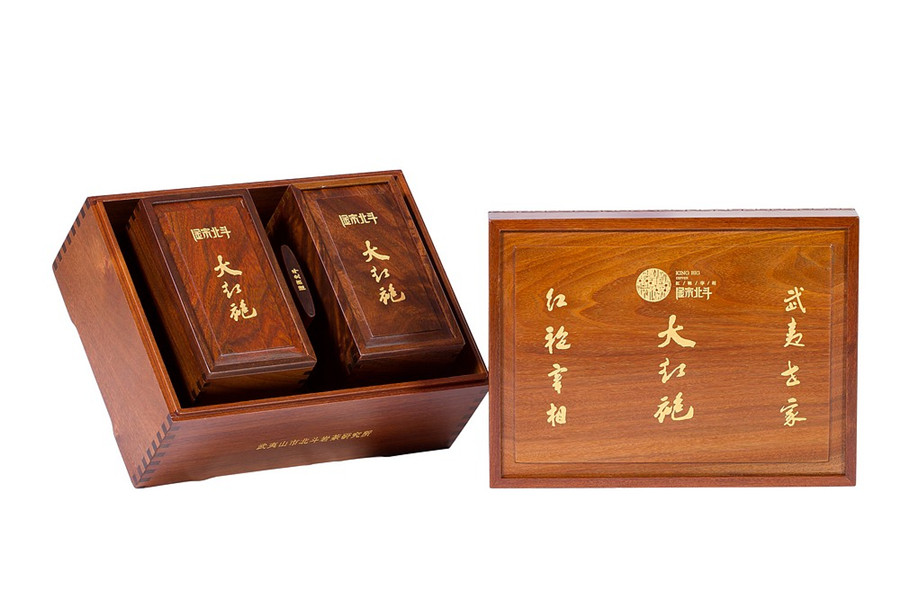 298g司南大红袍(醇香型) 规 格:8.3g×36泡 零售价:6800元/盒 发酵焙火适度,香韵好,味甘醇。 色泽绿褐,黑褐油润,外形条索紧结,匀整。 汤色橙红明亮,滋味醇厚,花香馥郁,岩韵明显。 小壶小杯细品慢饮,才能真正品尝纯正武夷岩茶之颠的韵味。